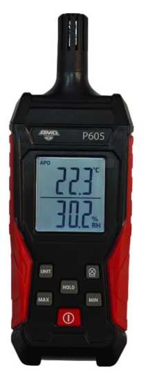 Термогигрометры представляют собой переносные многофункциональные микропроцессорные приборы и состоят из электронного блока, размещенного в пластиковом корпусе, и несъемного (модификации AMO P600, AMO P605, AMO P615, AMO P620 Pro) или съемного, телескопического (модификация AMO P630 Pro) измерительного зонда. Электронный блок выполнен в пластиковом корпусе и состоит из микропроцессора, цифрового жидкокристаллического дисплея и кнопок различного назначения. Отсек с закрывающейся крышкой для сменных элементов питания расположен на тыльной стороне корпуса.