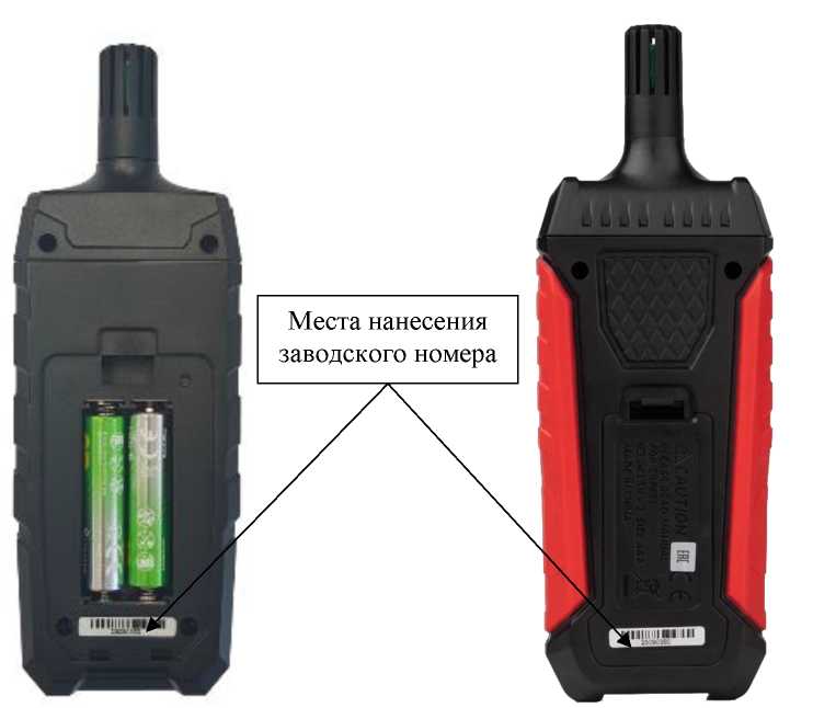 Заводской номер термогигрометров в виде цифрового обозначения, состоящего из арабских цифр, наносится на наклейку, прикрепляемую к тыльной стороне корпуса или под крышку батарейного отсека.