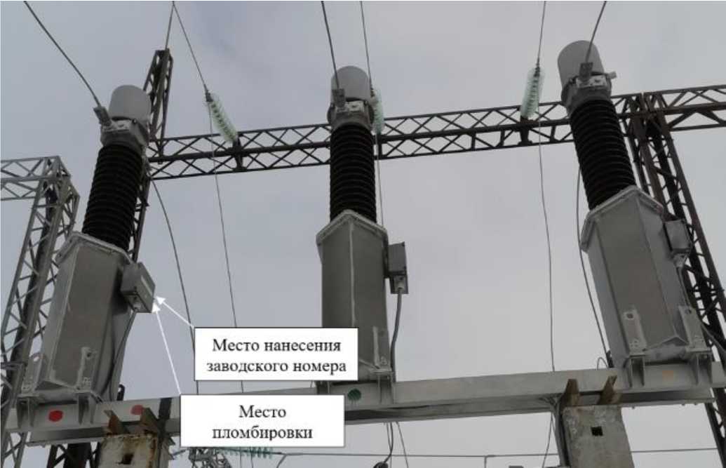 Конструкция трансформаторов тока представляет собой основание в виде алюминиевого бака с сердечниками вторичной обмотки и полимерный изолятор, смонтированный сверху бака. Выводы первичной обмотки расположены в верхней части трансформаторов тока. Выводы вторичной обмотки расположены в коробке выводов на корпусе бака трансформаторов тока и закрываются защитной металлической крышкой с целью ограничения доступа к измерительной цепи.
