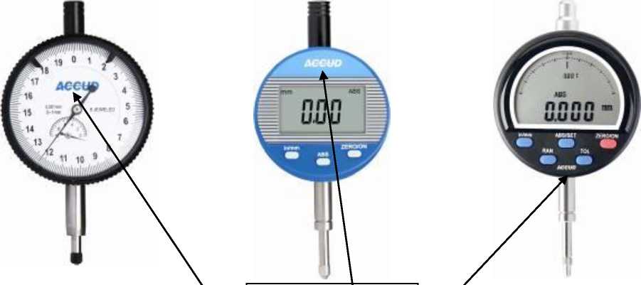 Индикаторы часового типа ACCUD (далее по тексту - индикаторы) предназначены для абсолютных и относительных измерений наружных линейных размеров, контроля отклонений от заданной геометрической формы, а также взаимного расположения поверхностей.