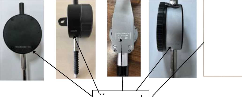 Товарный знак леею наносится на паспорт индикаторов типографским методом, на циферблат круговой шкалы, на лицевую поверхность корпуса индикатора краской или методом лазерной маркировки.
