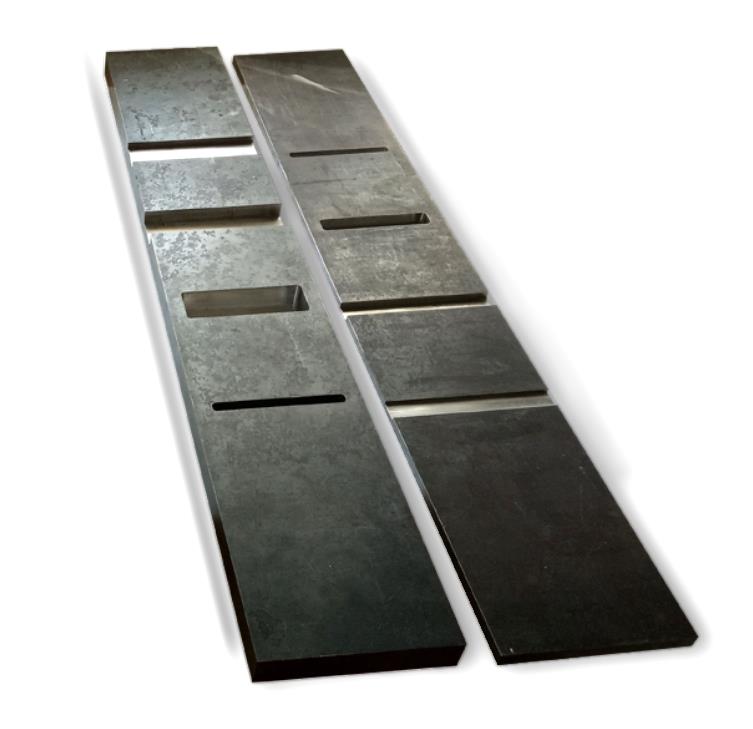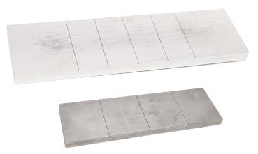 Меры СОП-Х-Y, где Х - количество искусственных дефектов на мере; Y - число, определяющее материал меры (таблица 1) представляют собой металлические бруски в виде параллелепипеда, на рабочих поверхностях которых нанесены от одного до семи искусственных дефектов разной глубины. Искусственные дефекты могут быть нанесены на одной стороне или с обеих сторон.