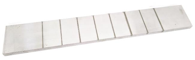 Меры СОП-Х-Y LONG, где Х - количество искусственных дефектов на мере; Y - число, определяющее материал меры (таблица 1) представляют собой металлические бруски в виде параллелепипеда, на рабочих поверхностях которых нанесены от пяти до двадцати искусственных дефектов разной глубины. Искусственные дефекты могут быть нанесены на одной стороне или с обеих сторон.
