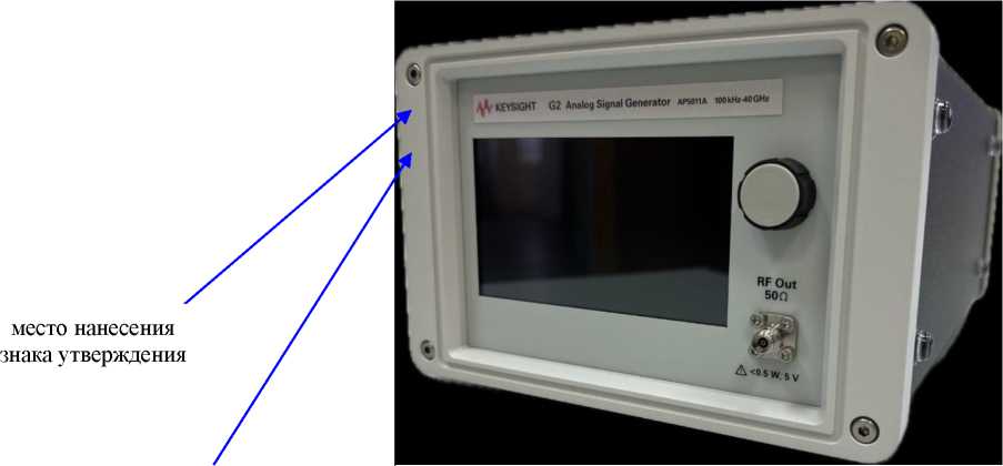 Общий вид генератора, места пломбировки от несанкционированного доступа, нанесения наклейки «Знак утверждения типа», и заводского номера представлены на рисунках 1, 2. Заводской номер, идентифицирующий генератор, нанесен на информационную табличку, размещенную на задней панели методом наклейки.