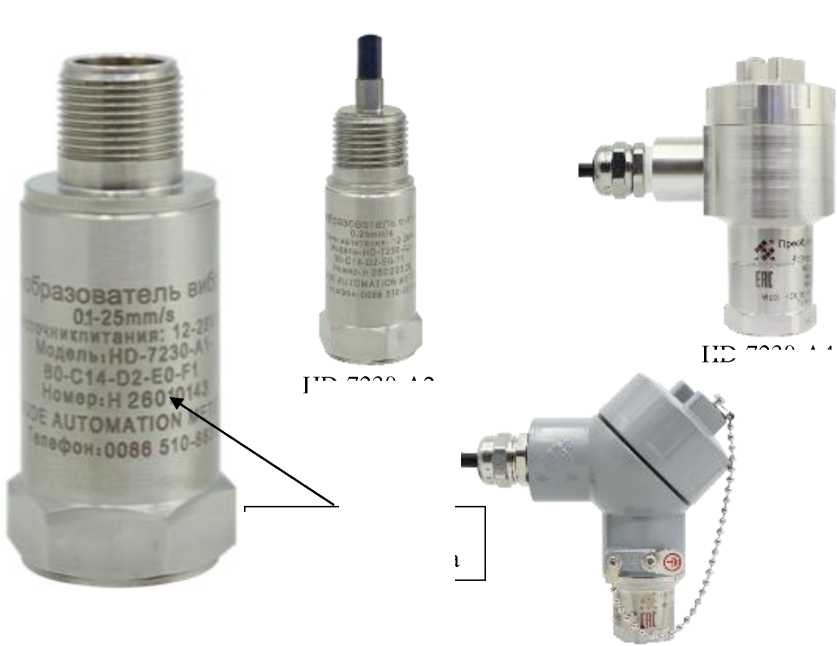 Рисунок 1 - Общий вид преобразователей вибрации HD-7230 и примеры модификаций