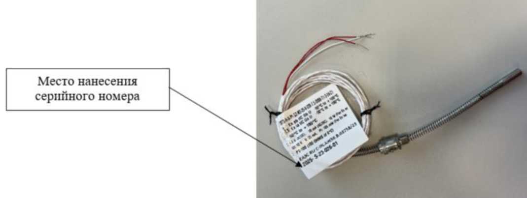 Серийные номера в виде буквенно-цифрового обозначения наносятся на информационную этикетку, закрепленную на кабель средства измерений методом печати.