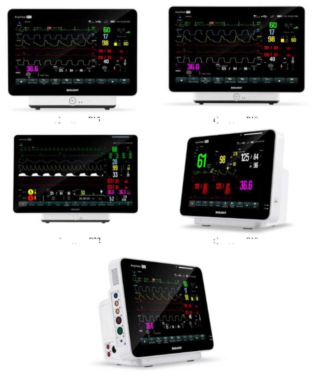 К настоящему типу средств измерений относятся мониторы следующих моделей: М10, М12, Р1, Р12, Р15, Р18, Р22, S10, S12, которые отличаются внешним видом, массой, габаритными размерами и набором измерительных каналов (модели M10 и S10 не имеют каналов термометрии и газового анализа). Монитор модели P1 может применяться как автономно, так и совместно с мониторами других моделей серии P, выполняя функции мультипараметрического модуля.